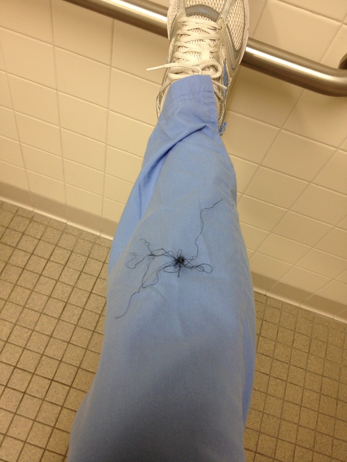 Luckily my double take revealed it to be just a string. And double luckily I hadn't screamed and brought lots of people running! I blame end-of-shift exhaustion.